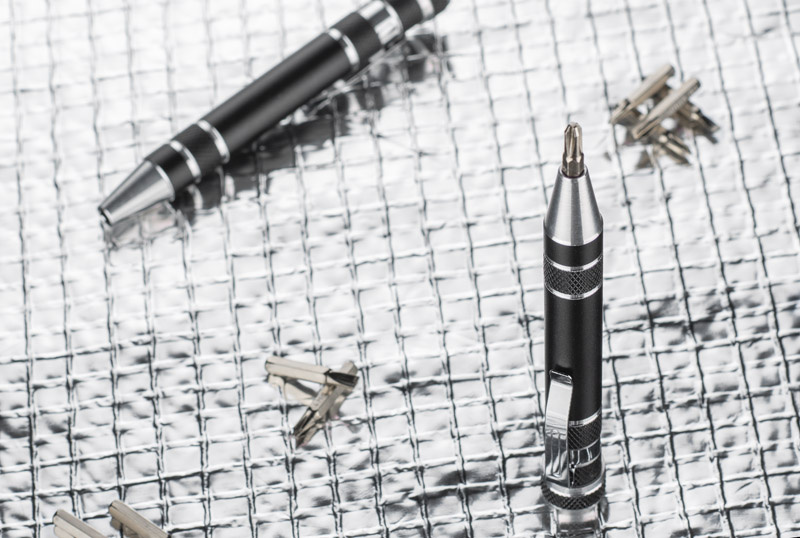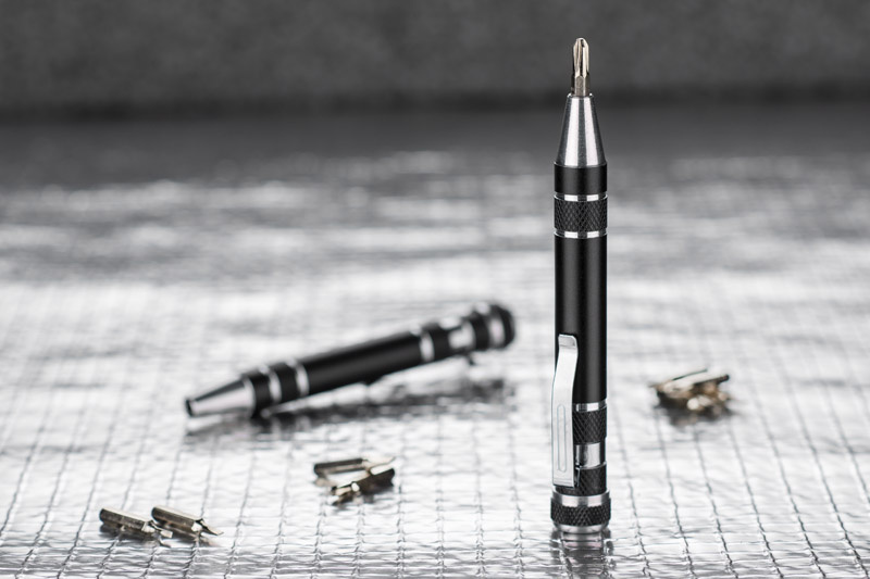 Komplet śrubokrętów zawiera 8 różnych końcówek.