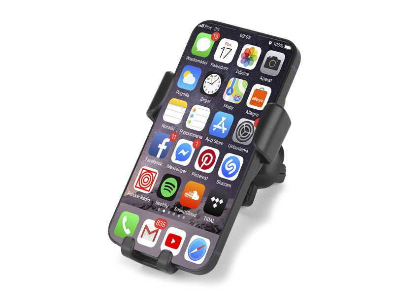 Ramiona uchwytu zaciskają się, zapewniając stabilne i bezpieczne trzymanie telefonu, którego szerokość powinna wynosić 65-88 mm (bez etui). Szybkie ładowanie i pewne