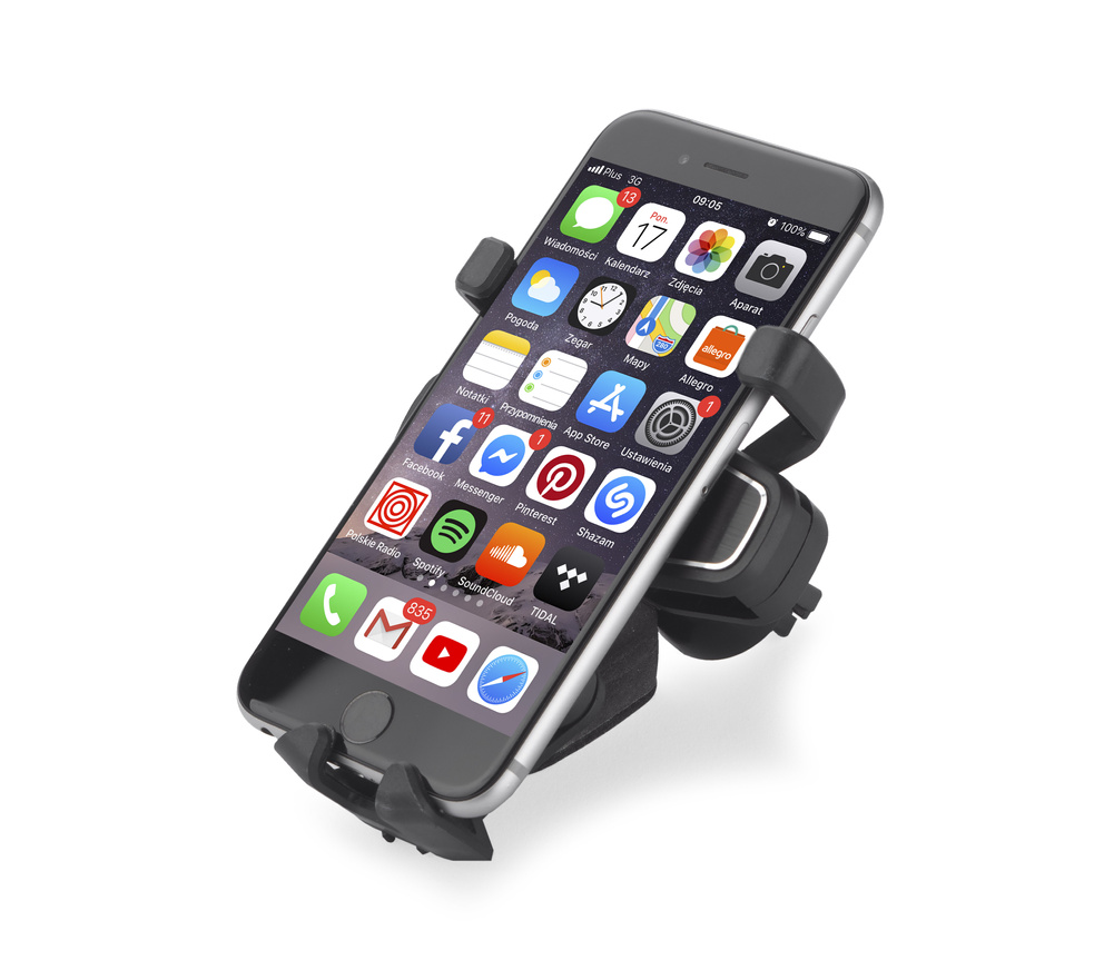 Kiedy telefon znajdzie się w uchwycie, siła nacisku powoduje, że podnoszą i zaciskają się ramiona, a urządzenie jest skutecznie zabezpieczone przed upadkiem.