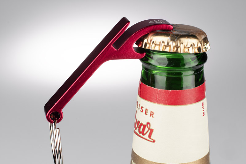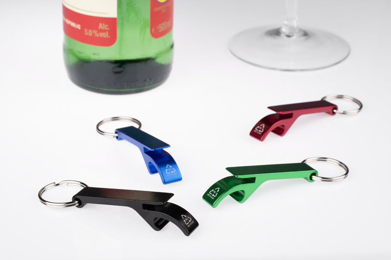 rALI to ekologiczny brelok wykonany z recyklingowanego aluminium, który pełni funkcję otwieracza do butelek i puszek.