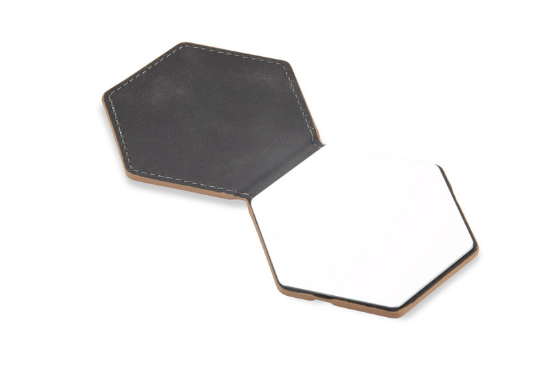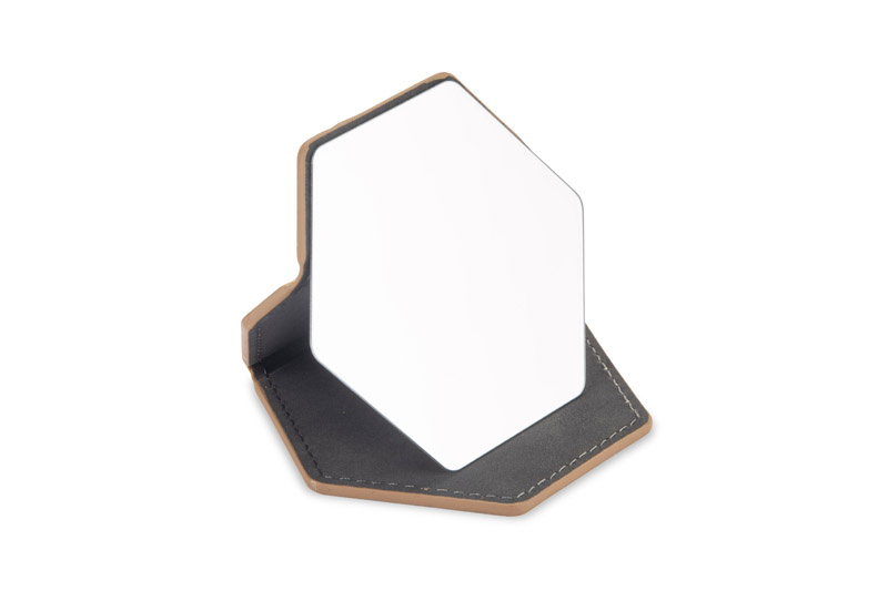Korkowa obudowa w kształcie heksagonu nadaje lusterku nowoczesny, ekologiczny charakter, wyróżniając je spośród innych akcesoriów.