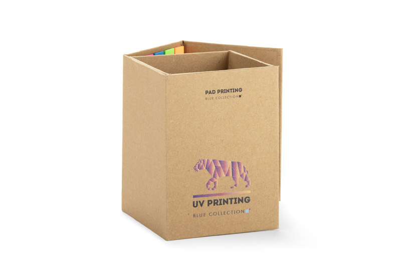 Przybornik na biurko KOS to funkcjonalny gadżet reklamowy wykonany z papieru kraftowego.