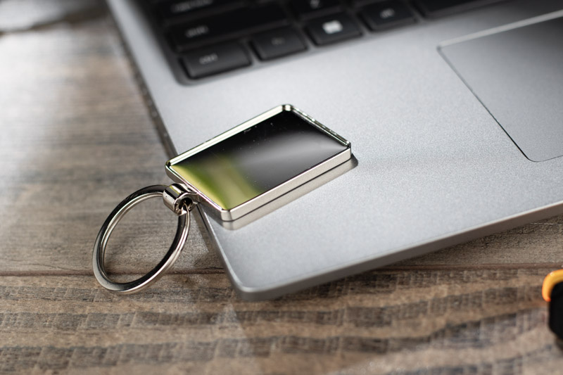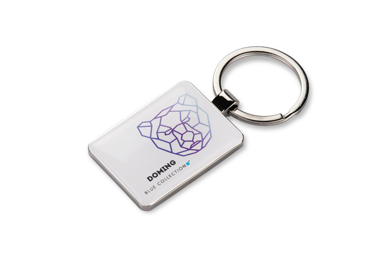 MOTI to prostokątny brelok wykonany z wysokiej jakości metalu, zaprojektowany z myślą o usłudze znakowania metodą doming.