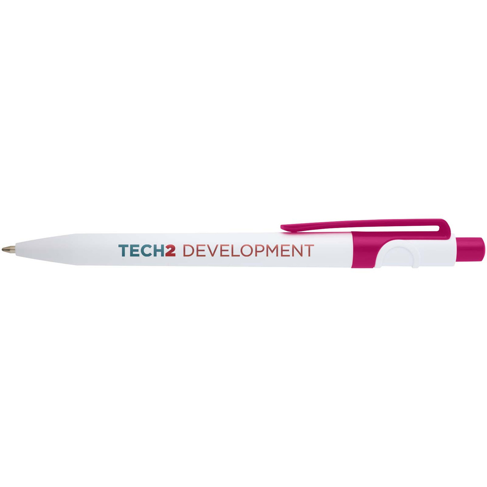 Długopis Unica z niebieskim tuszem jest wykonany z przetworzonego plastiku, co przyczynia się do zmniejszenia użycia plastiku pierwotnego.