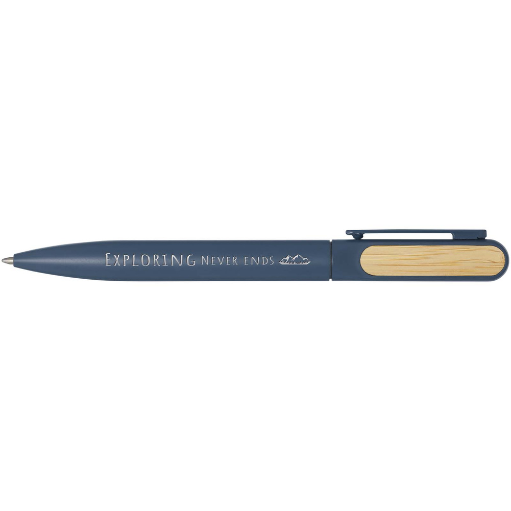 Blanca długopis o górnej części korpusu wykonanej z tworzyw sztucznych pochodzących z recyklingu pokryty kolorową powłoką natryskową z bambusowymi akcesoriami po