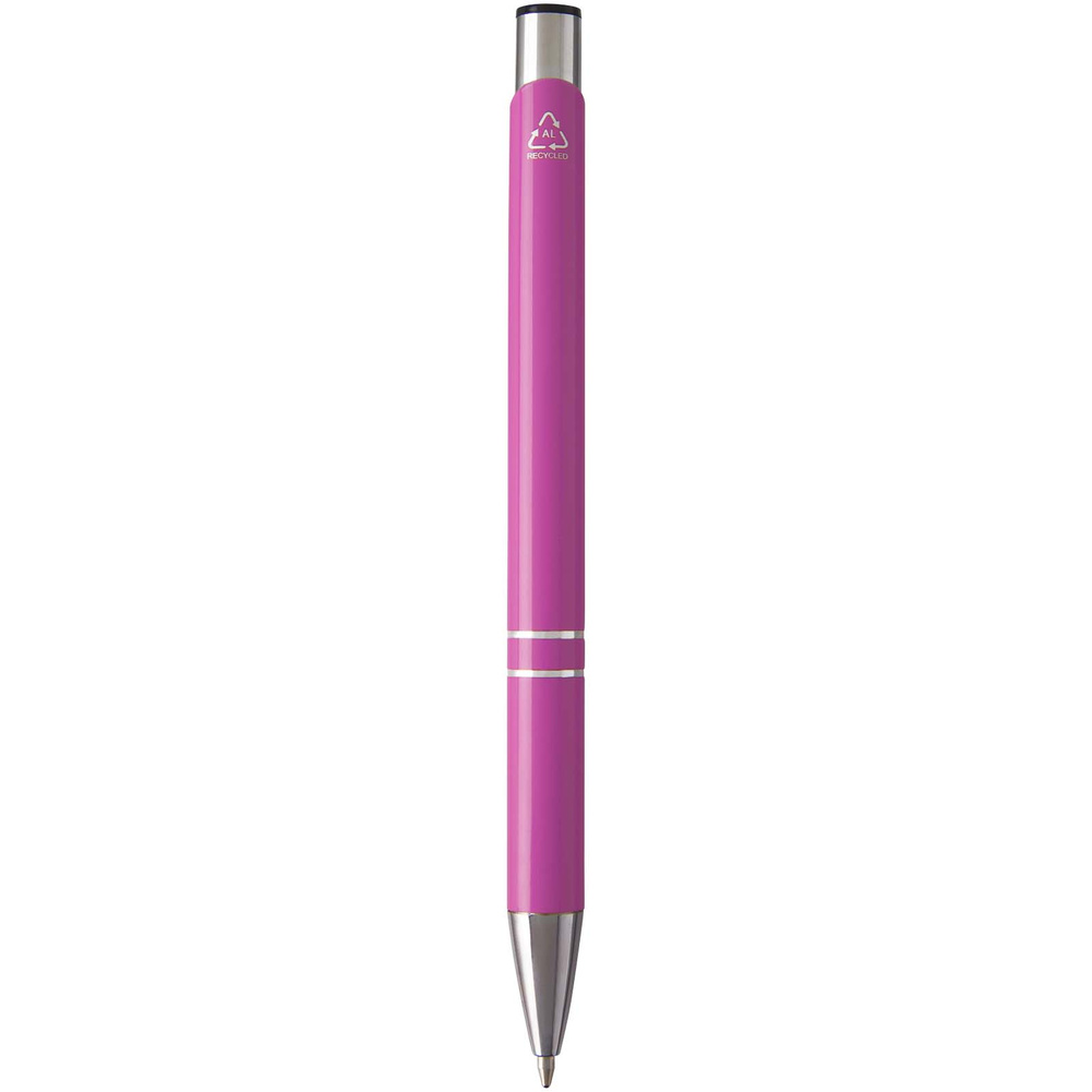 Długopis wykonany z aluminium z recyklingu z lakierowanym wykończeniem, połyskiem i wyrazistymi chromowanymi detalami.