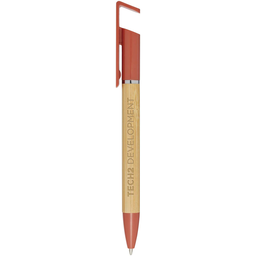 Bambusowy długopis, który pełni także funkcję uchwytu na telefon.
