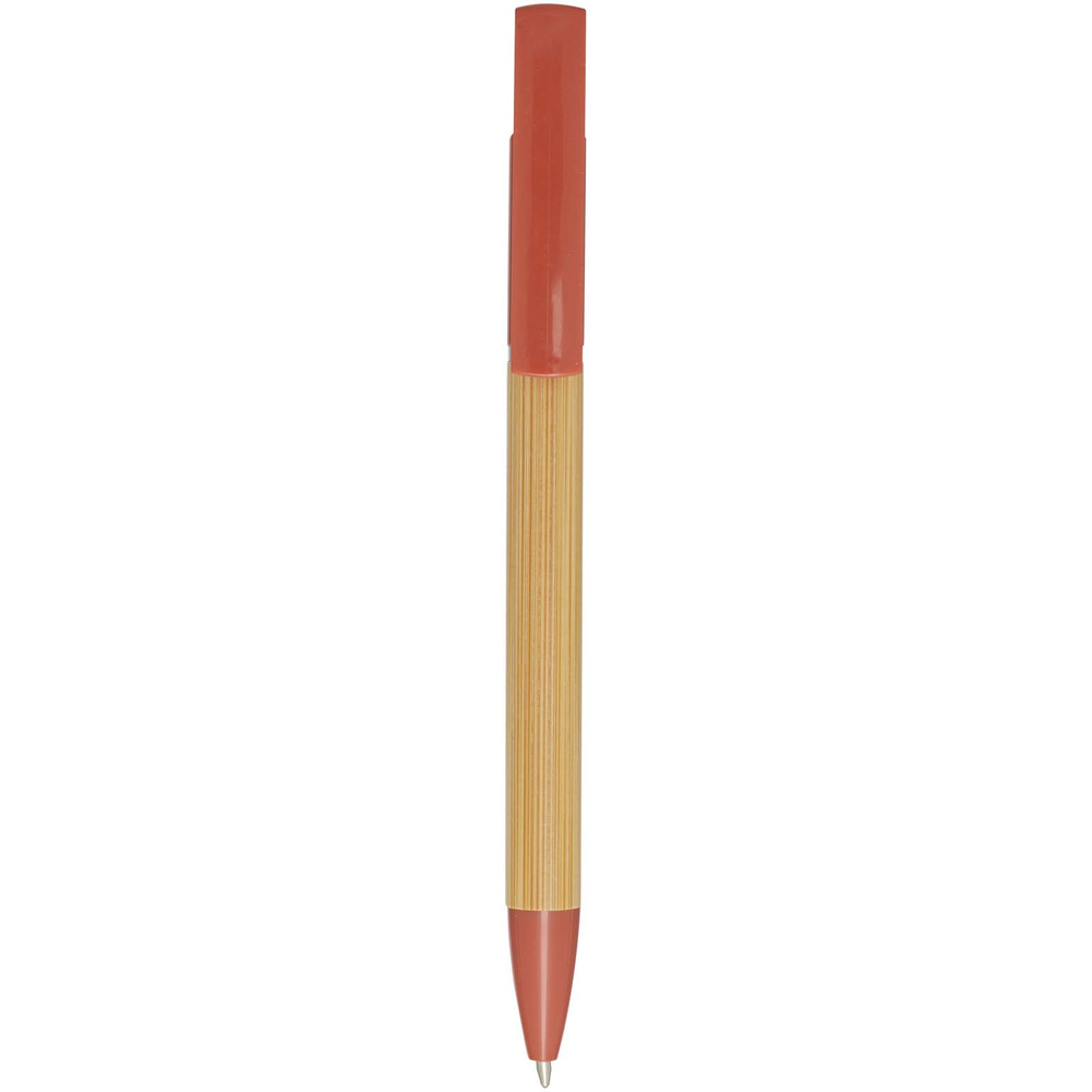 Przycisk i środkowy pierścień wykonane są z tworzyw sztucznych pochodzących z recyklingu, końcówka z mosiądzu, a korpus z bambusa pozyskiwanego w sposób
