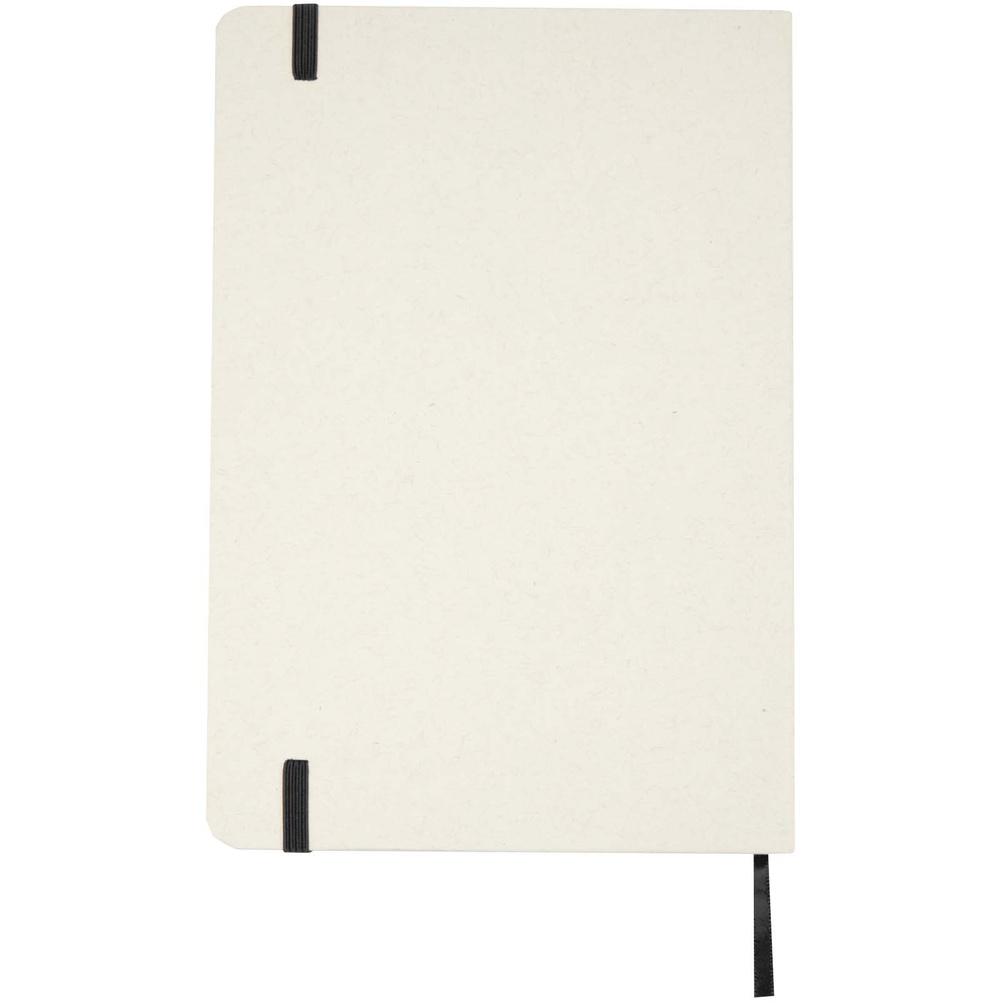 Notatnik Bass A5 w twardej okładce zawiera 80 papierowych kartek w linie o gramaturze 80 g/m2 i jest wykonany z przetworzonych kartonów na mleko.