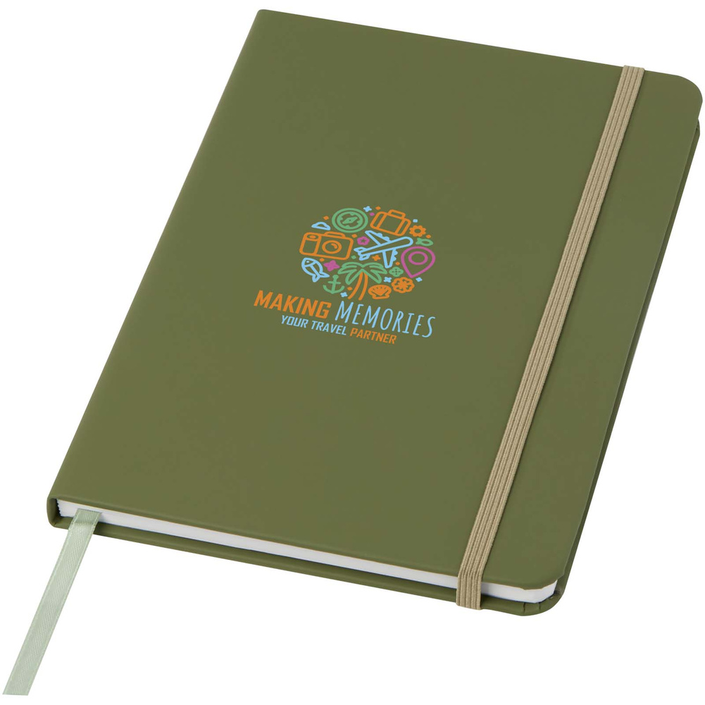 Notes A5 z kolorowym zamknięciem na gumkę i wstążką.