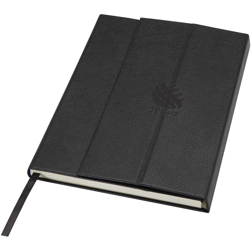 Notatnik w twardej oprawie Alejandra w formacie A5 jest z wykonany z przetworzonego poliuretanu i tworzywa RPET, zawiera 80 kartek w linie o gramaturze 70 g/m² w