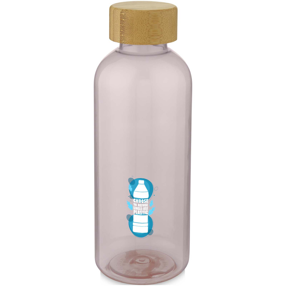 Jednościenny bidon z tworzywa sztucznego pochodzącego w 100% z recyklingu z elegancką bambusową pokrywką.