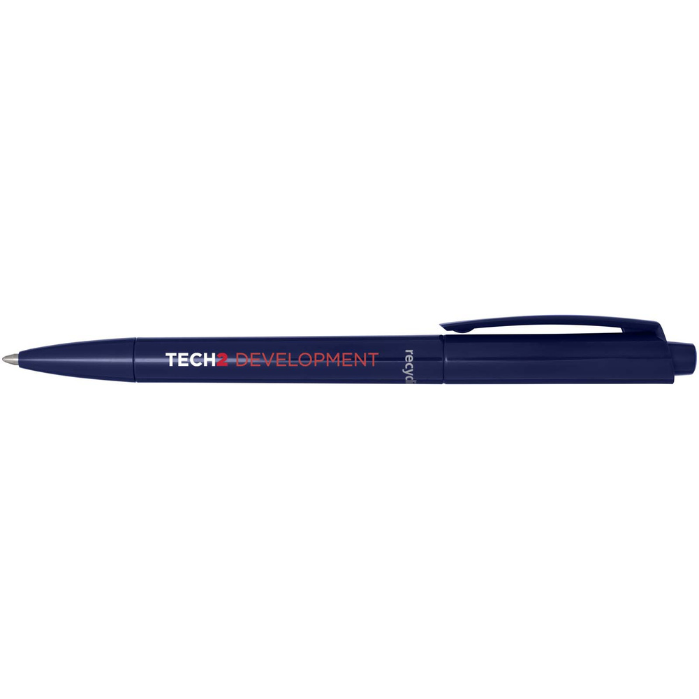 Długopis z korpusem i klipsem wykonanymi z tworzyw sztucznych pochodzących z recyklingu oraz końcówką ze stali nierdzewnej.