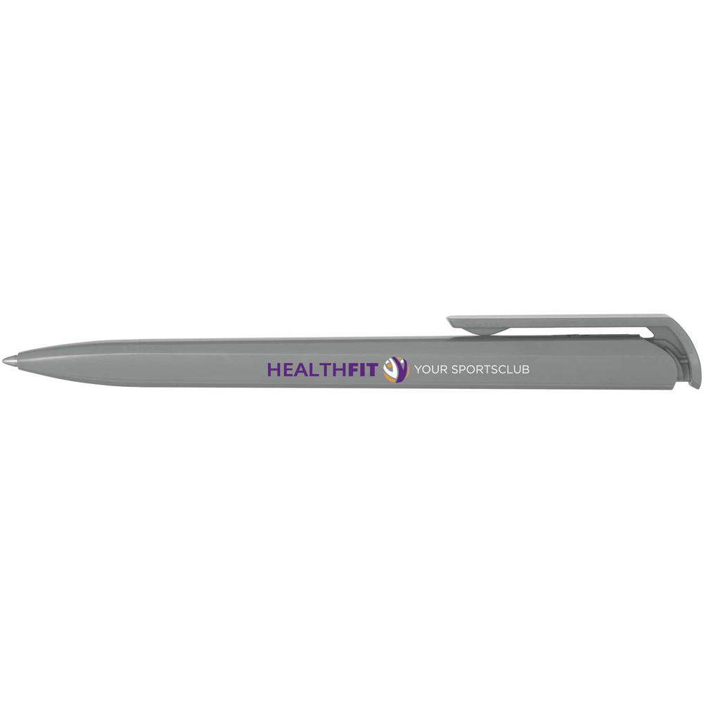 Długopis z korpusem i klipsem wykonanymi z tworzyw sztucznych pochodzących z recyklingu oraz końcówką ze stali nierdzewnej.