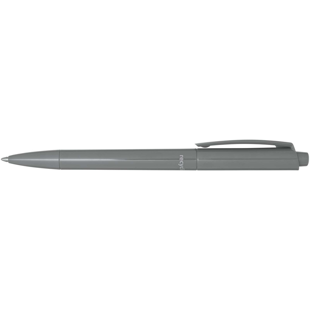 Długopis z korpusem i klipsem wykonanymi z tworzyw sztucznych pochodzących z recyklingu oraz końcówką ze stali nierdzewnej.