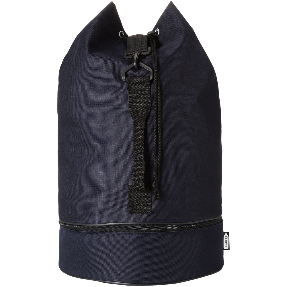Wodoodporna torba podróżna wykonana z plastiku PET pochodzącego z recyklingu z obszerną główną komorą o pojemności 20 litrów zamykana sznurkiem, z bocznym