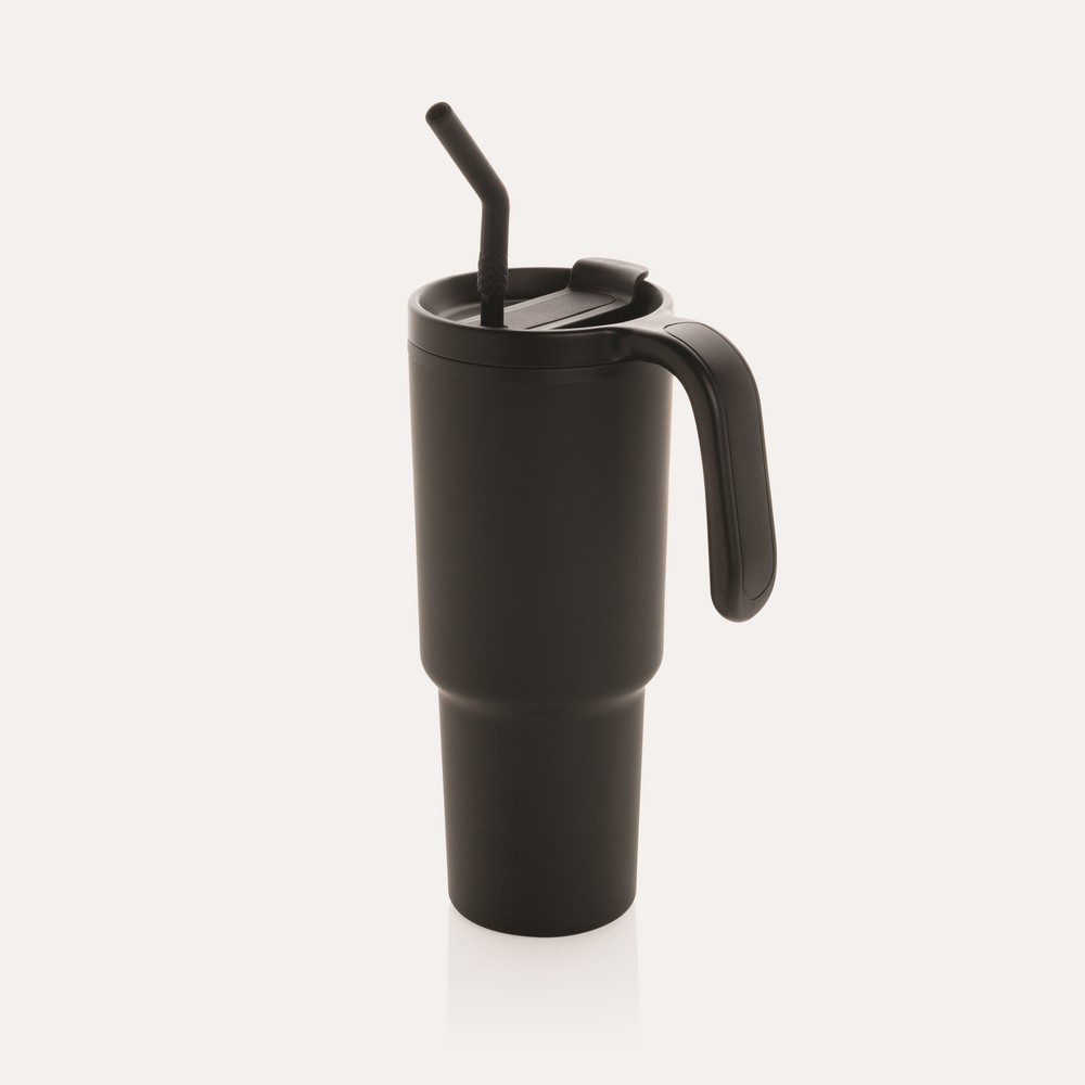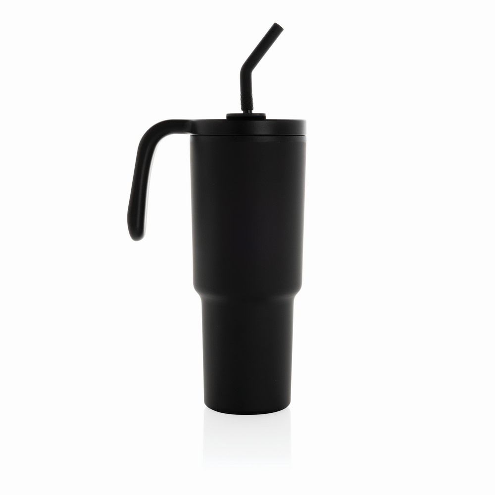 Kubek termiczny 900 ml, wykonany ze stali nierdzewnej z recyklingu, podwójne ścianki ze stali nierdzewnej z próżnią pomiędzy, zakręcane wieczko z dziubkiem i słomką,