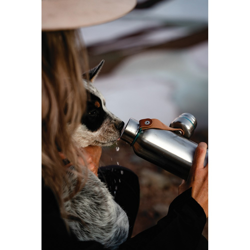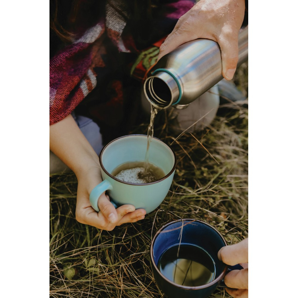 Butelka termiczna 500 ml z uchwytem, wykonana ze stali nierdzewnej, podwójne ścianki z próżnią pomiędzy, utrzymuje temperaturę napojów ciepłych do 12 godzin i