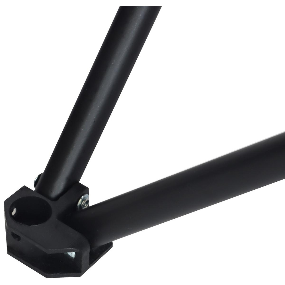 - stalowy stelaż wyposażony w stopki o specjalnym kształcie nie wbijającym się w podłoże i z otworami, dzięki którym można je dodatkowo zakotwiczyć