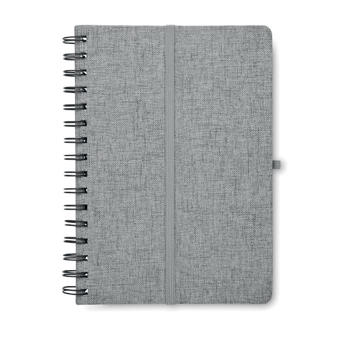 Notatnik A5 z twardą okładką 600D RPET z funkcją podstawki na smartfon.