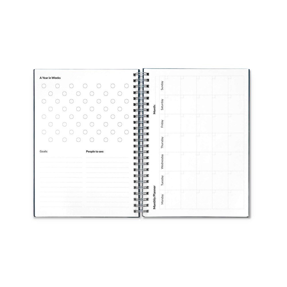 rocznej podzielonej na tygodnie i 22 zwykłych stron do robienia notatek.