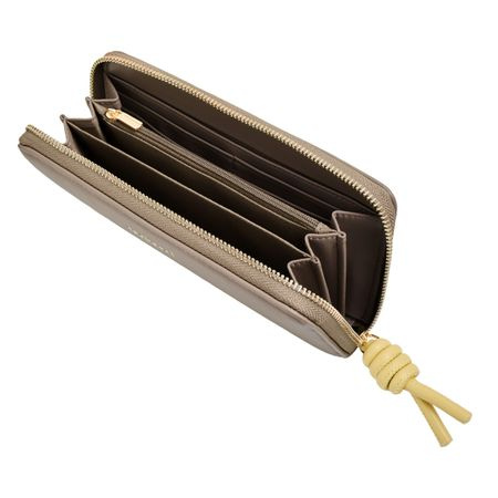 Portfel Apolline w kolorze taupe jest wykonany z miękkiej, matowej, wysokiej jakości skóry wegańskiej (PU) i ma eleganckie złote wykończenia dla wyrafinowanego wykończenia.