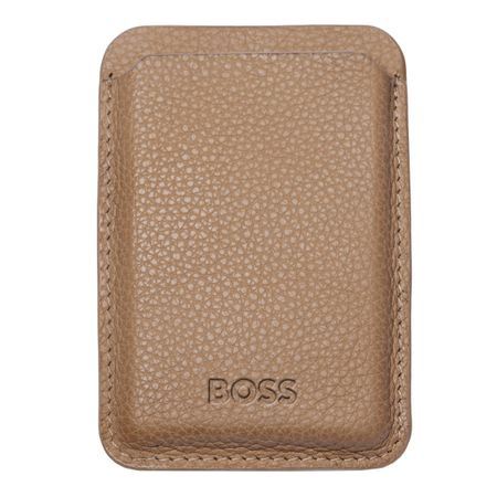 Nasze magnetyczne etui na karty zostało wykonane z najwyższej jakości skóry naturalnej. Jest wyposażony w system MagSafe, który umożliwia przyczepienie z tyłu dowolnego telefonu wyposażonego w tę technologię. Ta wielbłądzia wersja ma piękną matową teksturę z żwirowanym ziarnem i jest subtelnie wytłoczonym logo BOSS. Wykończeniem jest podszewka z monogramem, która dodaje kolejny subtelny element brandingu. Pomimo minimalistycznej i kompaktowej konstrukcji, może pomieścić do 5 kart.
