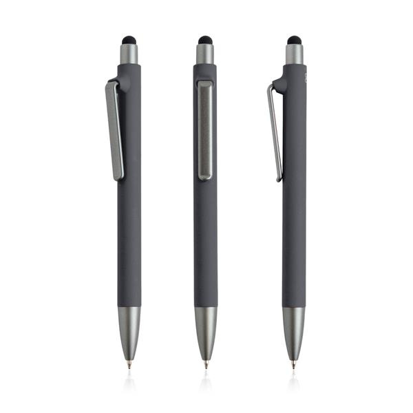 Ten długopis dotykowy, dostępny w szerokiej gamie kolorów, ma mechanizm wciskany i pisze na niebiesko.