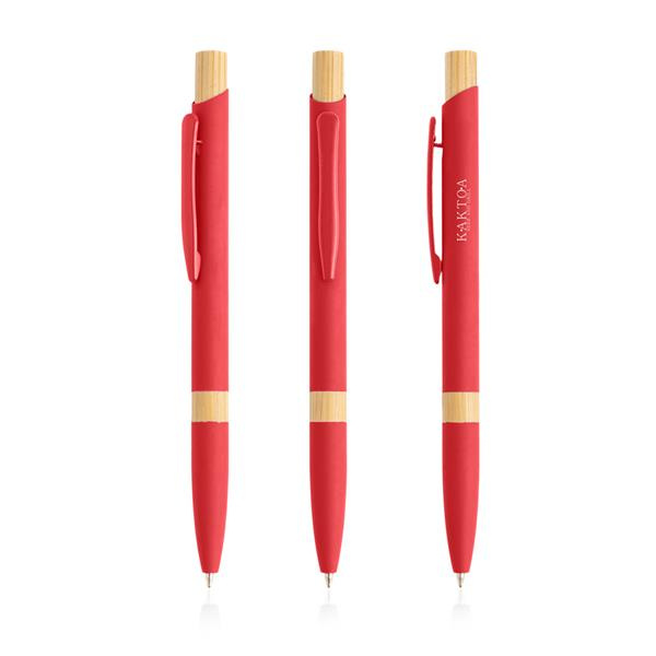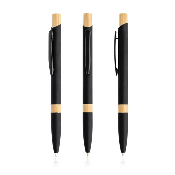 Ten długopis piszący na niebiesko ma nowoczesny design, łączący metal z naturalnym bambusem, tworząc niezapomniany prezent.
