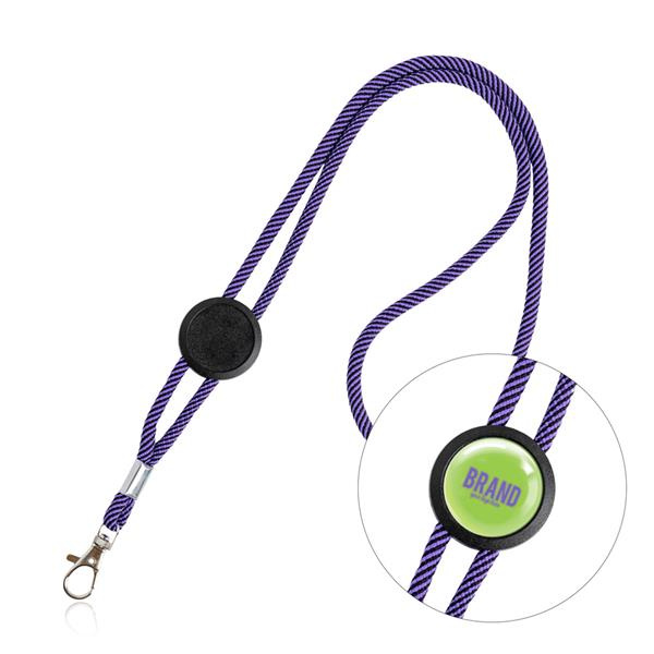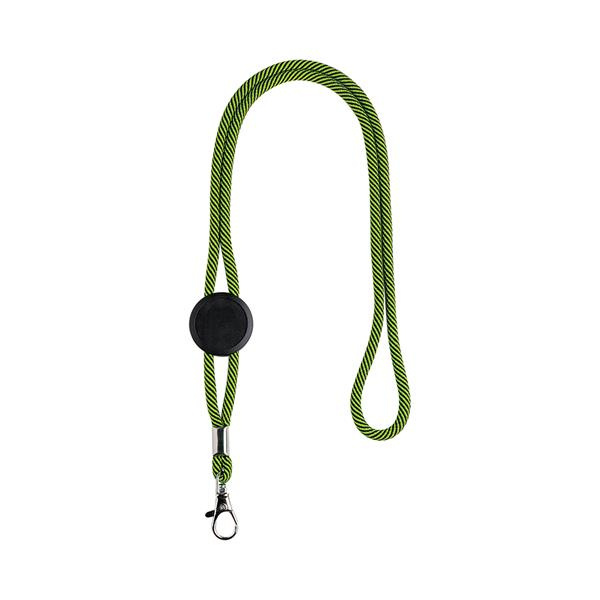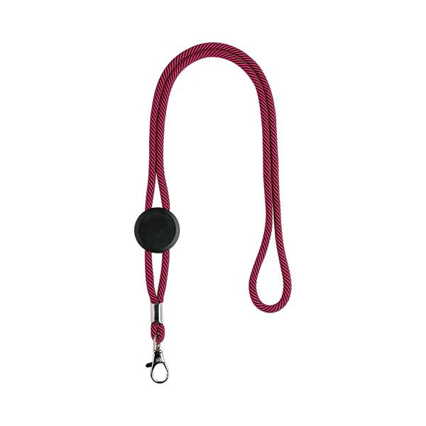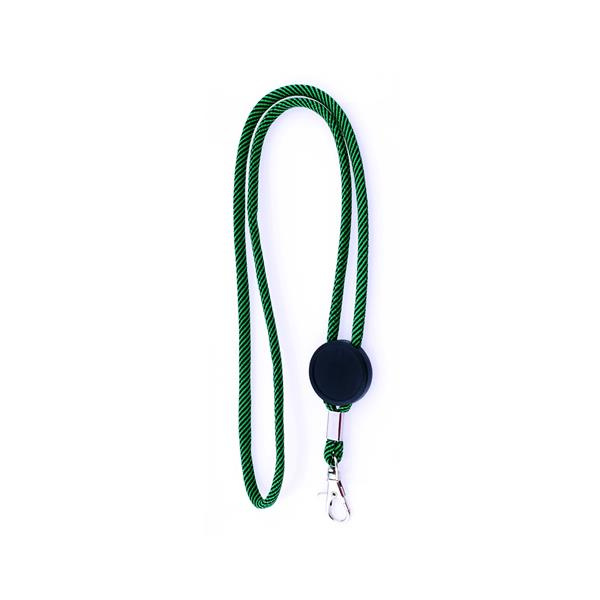 Regulowana smycz wykonana z poliestru. Logo umieścimy w kółku o średnicy 2,5 cm.