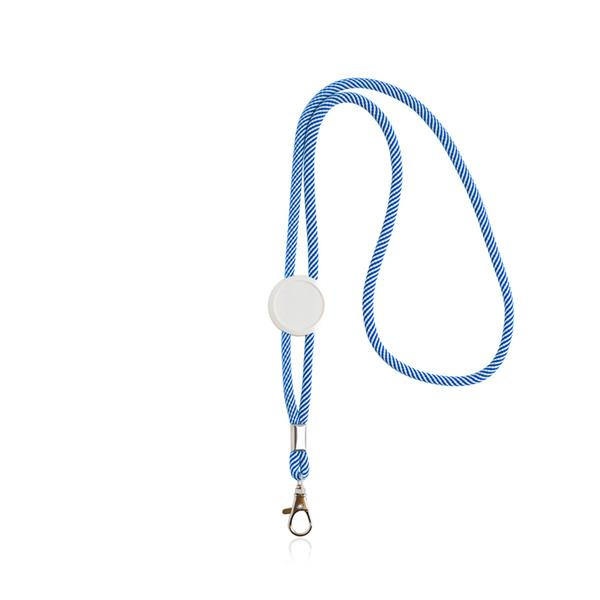 Regulowana smycz z karabińczykiem wykonana z poliestru. Logo umieścimy w kółku o średnicy 2,5 cm.
