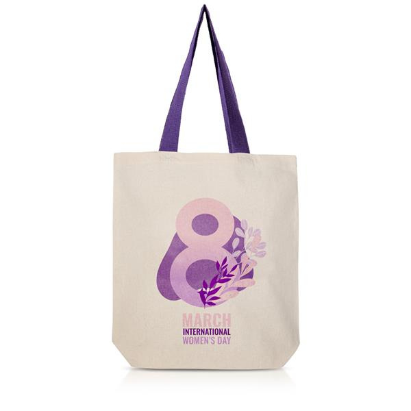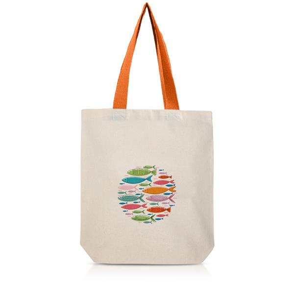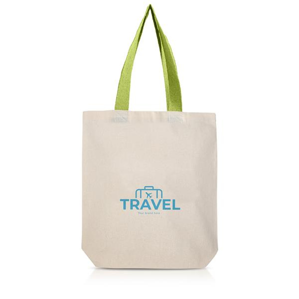 Klasyczna torba bawełniana w naturalnym kolorze z dwoma długimi, kolorowymi uchwytami.