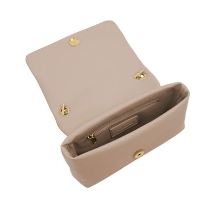Ciepły odcień nude jest uzupełniony luksusowymi złotymi wykończeniami, a złota tabliczka z logo `C` z wykończeniem ABS w kolorze nude płynnie dopasowuje się do koloru torby, dodając dopracowany i spójny detal.