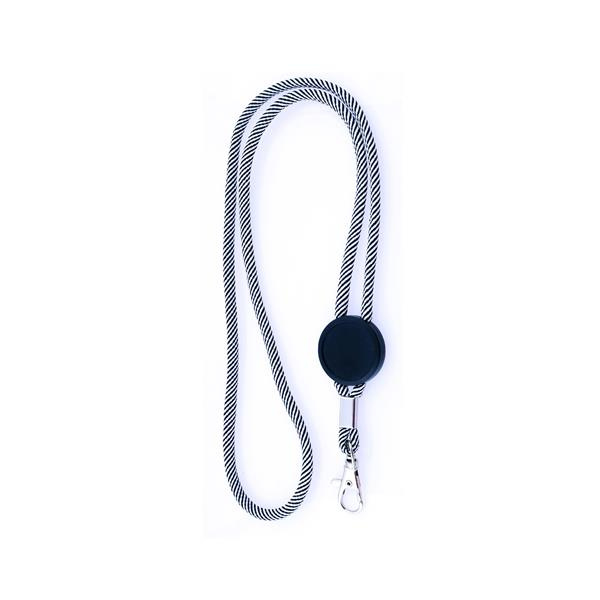 Regulowana smycz wykonana z poliestru. Logo umieścimy w kółku o średnicy 2,5 cm.