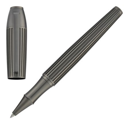 Ten kształt zapewnia idealną równowagę między siłą i elegancją, charakteryzując się głębokim, ponadwymiarowym wzorem w prążki. Pokryty luksusowym matowym odcieniem brązu, element emanuje minimalistycznym, ale skomplikowanym i wyrafinowanym charakterem. Skrupulatne rzemiosło i subtelne detale sprawiają, że jest on zarówno cenny, jak i dyskretny. Jego konstrukcja prezentuje odważną współczesną estetykę, co skutkuje uderzającym instrumentem piśmiennym.