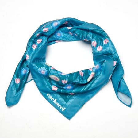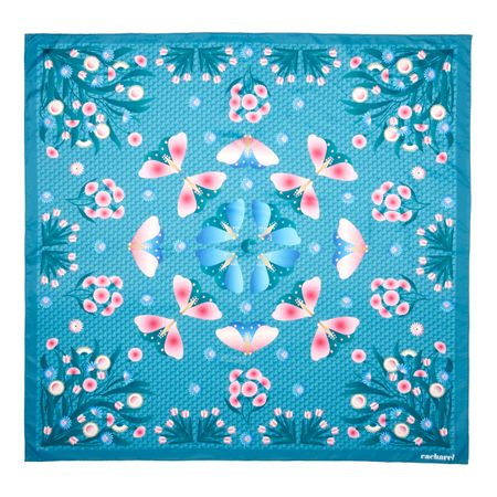 Ten szal ma wymiary 90X90 cm. Ponieważ szaliki nadal są produktem definiującym markę Cacharel, ta wersja wyróżnia się delikatnymi motywami kwiatowymi, emanującymi kobiecością i żywiołowością, zachowując jednocześnie współczesny charakter.