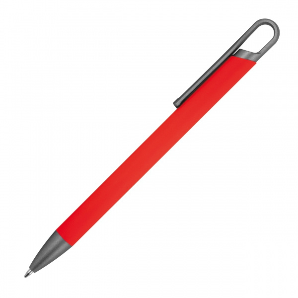 Długopis soft touch, wykonany z aluminium pochodzącego z recyklingu, z pół żelowym wkładem piszącym na niebiesko, z końcówką 0,5 mm.