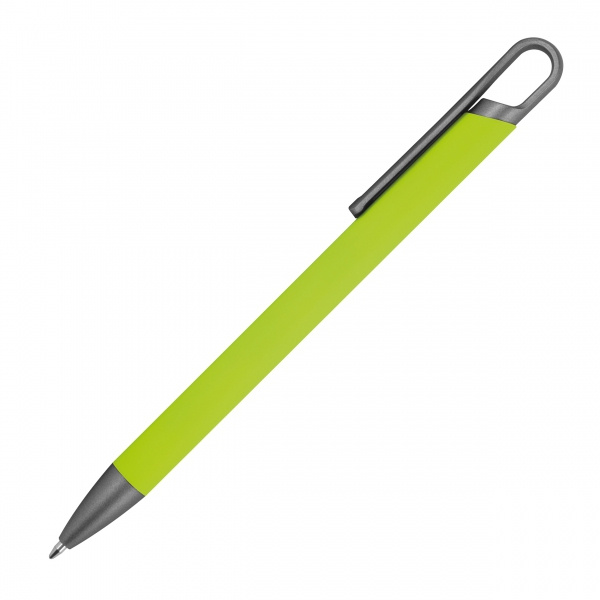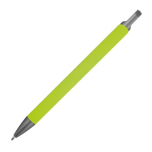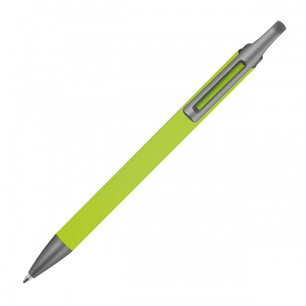 Długopis soft touch, wykonany z aluminium pochodzącego z recyklingu, z pół żelowym wkładem piszącym na niebiesko, z końcówką 0,5 mm.