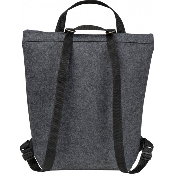 Duży plecak wykonany z filcu pochodzącego z recyklingu, z dodatkową kieszenią z przodu.
