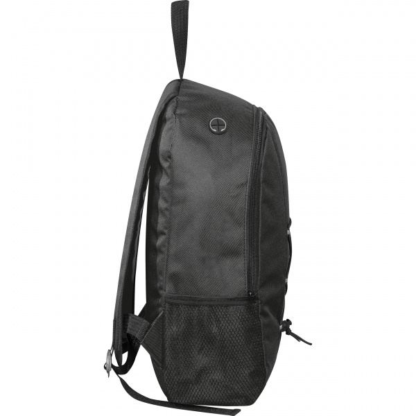 Plecak posiada uchwyt do przenoszenia, dwie siatkowe kieszenie boczne i watowane szelki.