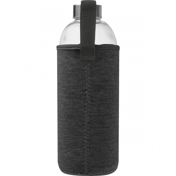 Szklana butelka o pojemności 1000 ml w neoprenowym etui, z zakrętką ze stali nierdzewnej.