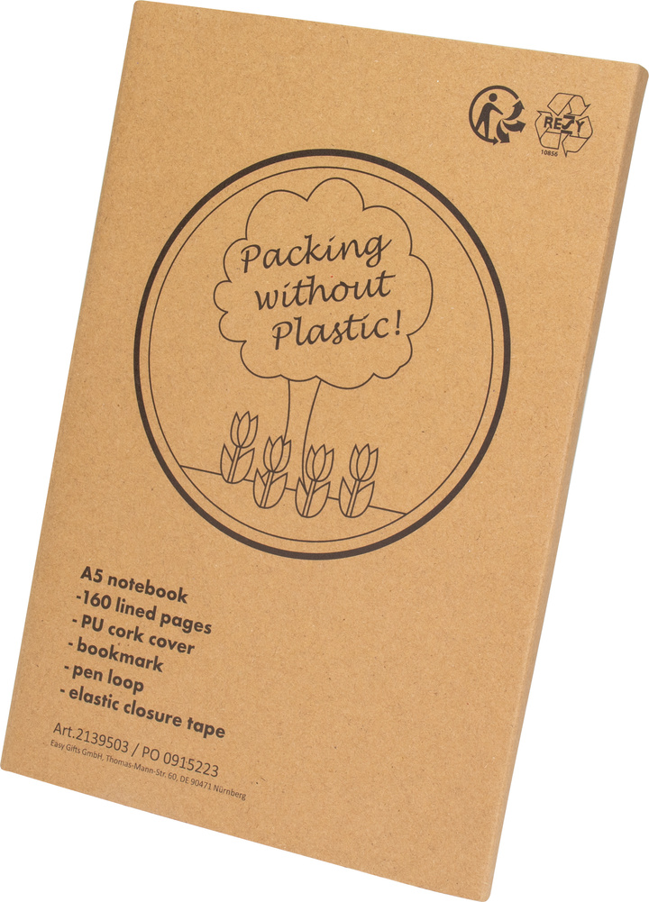 Notes A5 z 160 stronami w linie, w twardej oprawie wykonanej z PU , zawiera zakładkę, pętelkę na długopis oraz elastyczną taśmę do zamykania.
