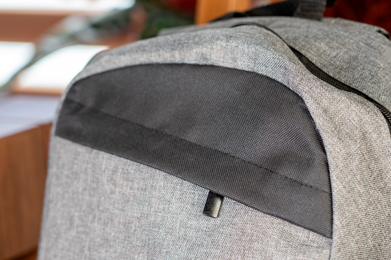 Plecak wykonany z poliestru 600D, z dużą przegrodą główną, mniejszą kieszonką z przodu.
