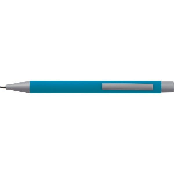 Zestaw piśmienny składający się z piszącego na niebiesko długopisu ze srebrnymi elementami i dopasowanego ołówka automatycznego.