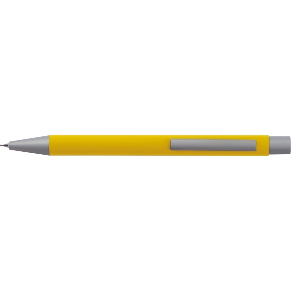 Zestaw piśmienny składający się z piszącego na niebiesko długopisu ze srebrnymi elementami i dopasowanego ołówka automatycznego.