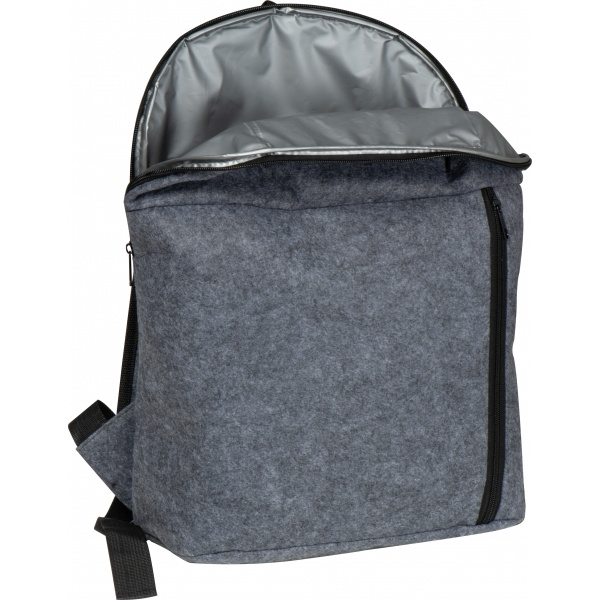 Plecak termiczny z filcu RPET, z główną komorą chłodzącą i małą kieszonką na zamek z przodu.