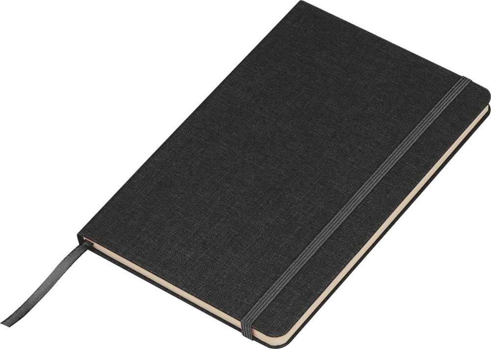 Notes A5 w linie, z 80 kartkami z trzciny cukrowej, z okładką z RPET, zakładką i zamknięciem na gumkę.