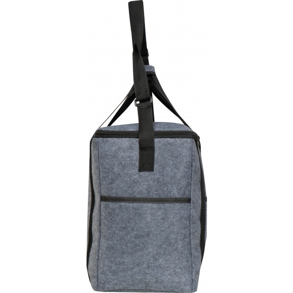 Torba termiczna wykonana z filcu pochodzącego z recyklingu, z dużą komorą główną i trzema bocznymi kieszonkami.