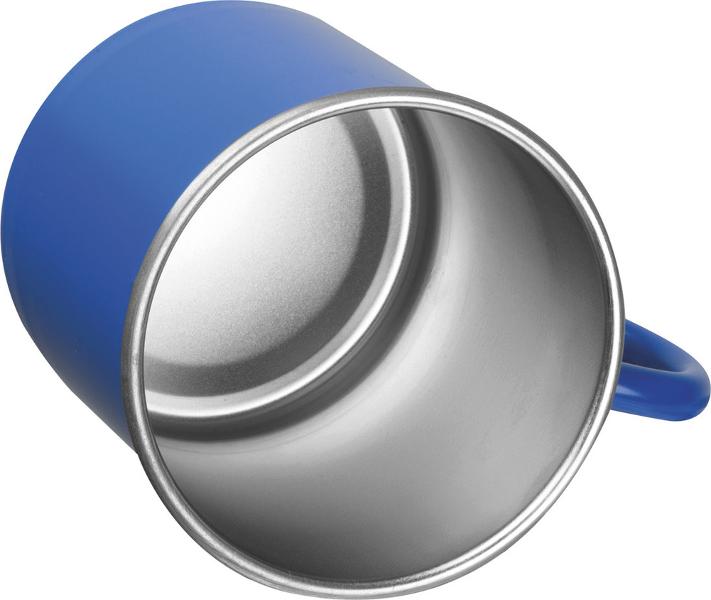 Nostalgiczny kubek do picia ze stali nierdzewnej o pojemności około 350 ml.