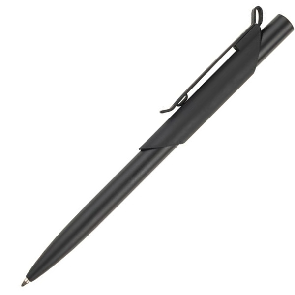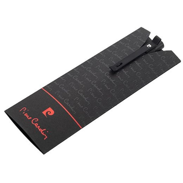 Metalowy długopis Pierre Cardin o niepowtarzalnym designie, z czarnym gumowanym elementem pod klipsem.